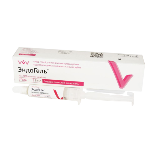 Эндогель №1 на основе ЭДТА ВладМива (Россия) - применяется для эндодонтического лечения. Содержит 17% ЭДТА, обеспечивающий хелатирование кальция и размягчение дентина. Объем 5 мл в шприце с тонкой канюлей позволяет точно дозировать средство. Обладает повышенной проникающей способностью, упрощает очистку каналов и повышает качество обработки.